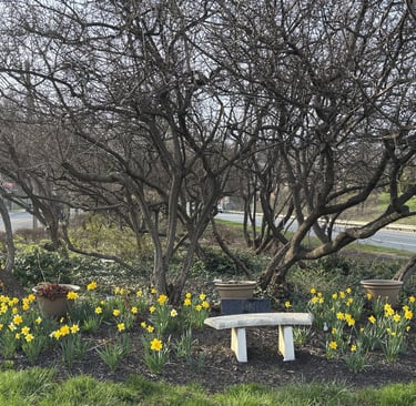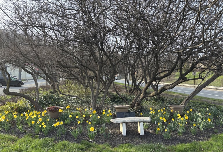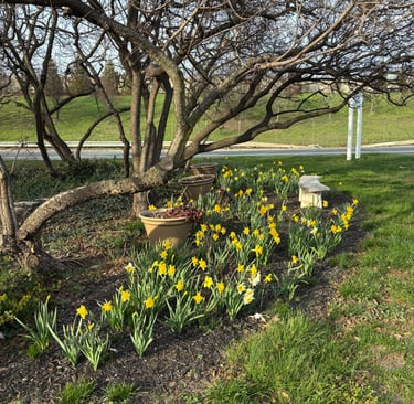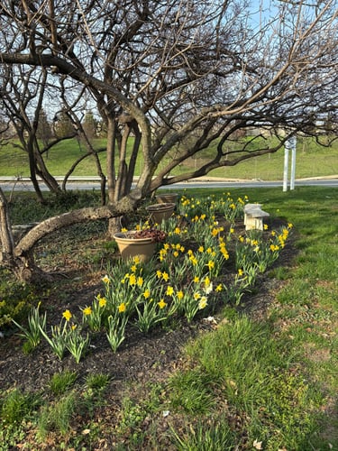 Daffodils planted by SIGC members in October 2025 blooming at the Healing Garden! - April 2026